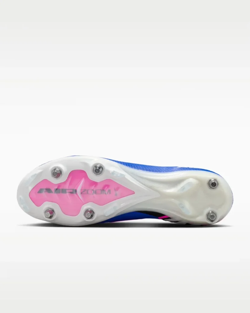 Das wellenförmige Traktionsmuster besteht aus einer Reihe von kaskadierenden Stollen, sodass das Air Zoom-Element eine größere Fläche erhält und gleichzeitig optimaler Grip auf der Tagesordnung steht. Der größte Stollen ist genauso hoch wie unsere traditionellen mittleren Stollen, sodass die Traktion nicht beeinträchtigt wird. Wir haben die wellenähnliche Traktion mit weiterentwickelten Chevron- und Blade-Stollen kombiniert, was schnelle Richtungswechsel erleichtert.